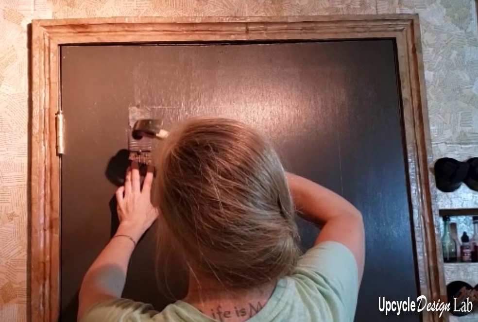 The first step was to paint the door. I started with a coat of primer paint and then added a top coat of gray.