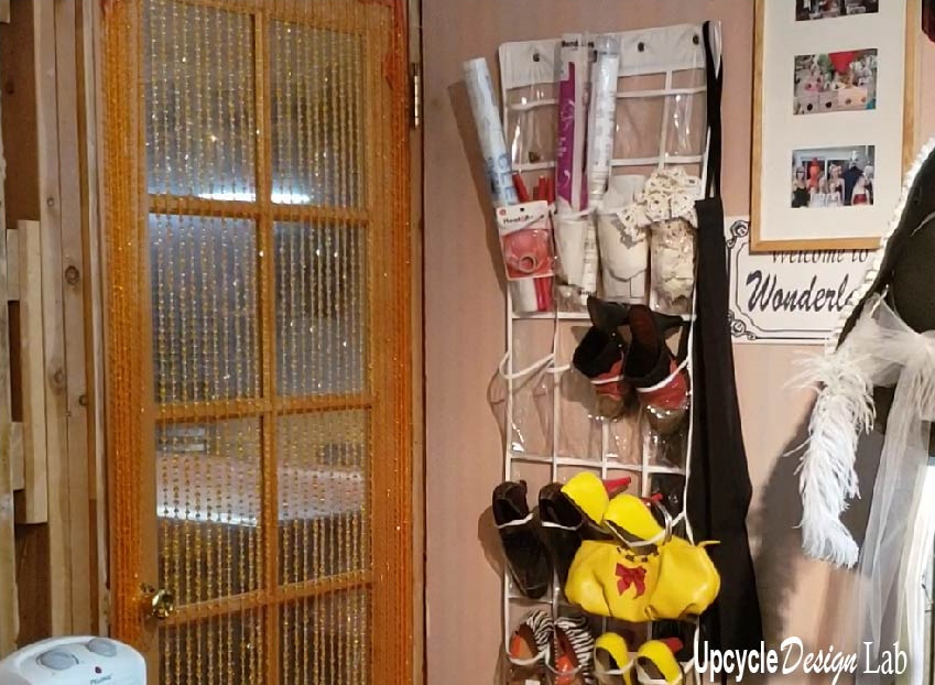 My project for today came about out of the necessity for more storage space. I was storing a bunch of craft supplies in this shoe organizer. It was functional but kind of ugly.