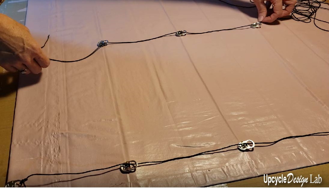The next step was to mark the curtain and make some small holes and then apply the hardware to the shade.
