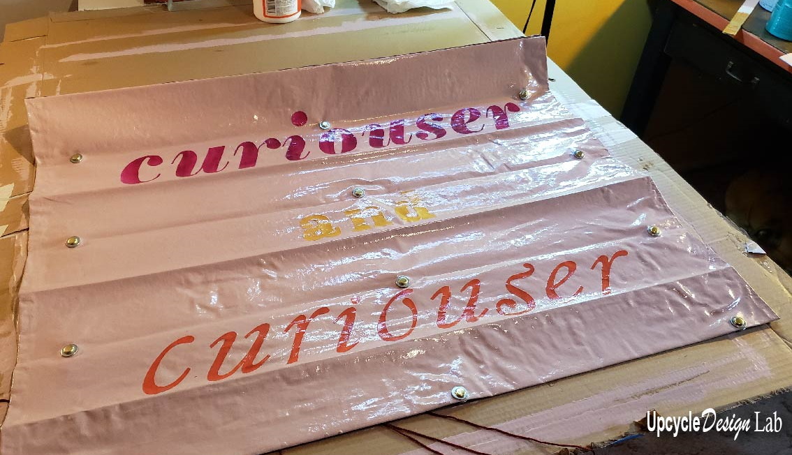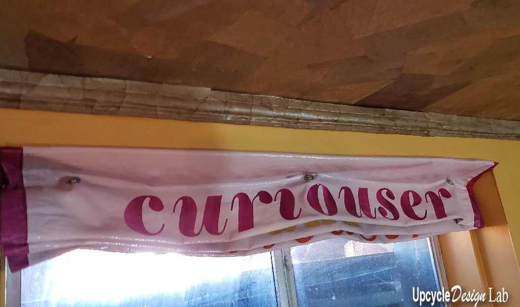 Once all the hardware is in place you can apply the cording and hang the drape but I decided to add some silly quotes to mine first. I used Mod Podge to adhere the letters to the drape.