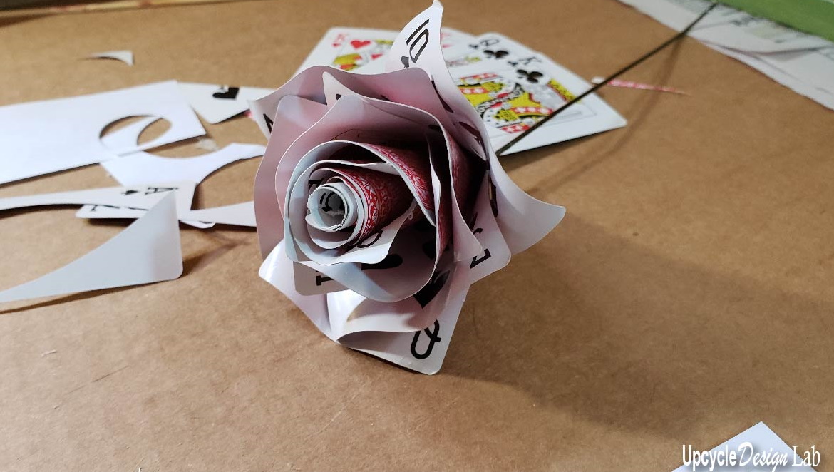 I used the 13 spades in the deck to make this first rose. The others were bigger and smaller.
