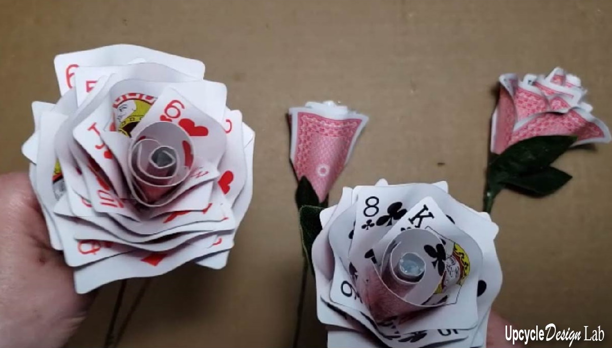 I used a deck of cards to make four roses in different sizes.