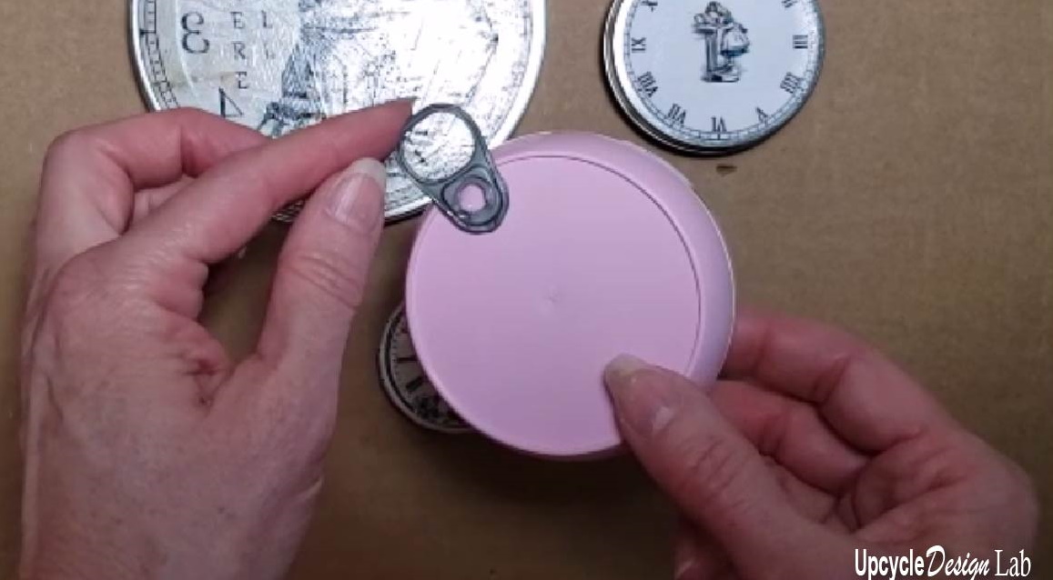 For my second project, I made a bunch of faux pocket watches from round tins and other plastic containers.
