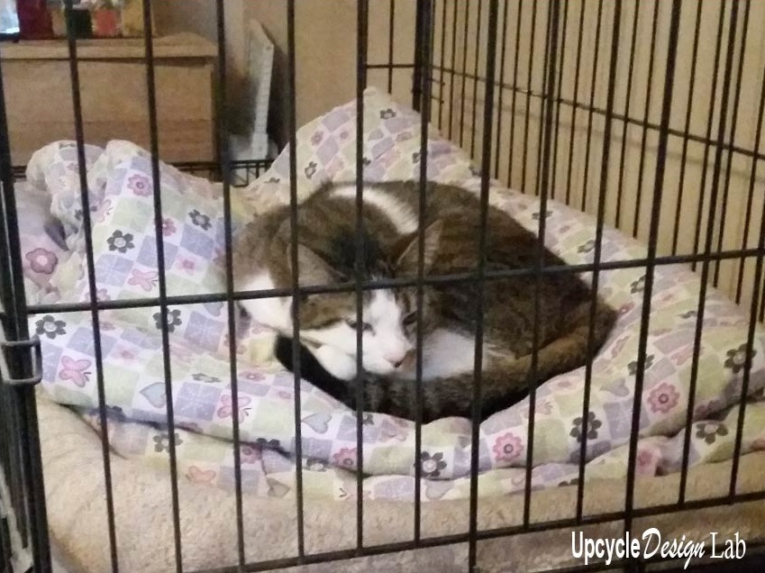 So it’s high time that the cats received a little attention. To that end, and because of the unsightly nature of the status quo, I decided to make a new bed for the cats.