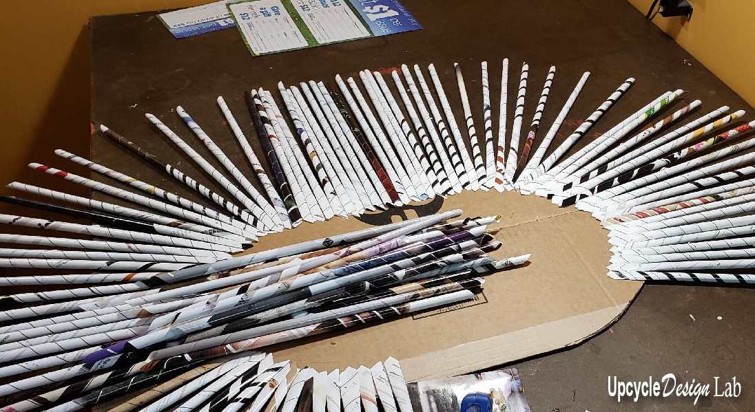 Step 2 – Roll and weave magazine paper