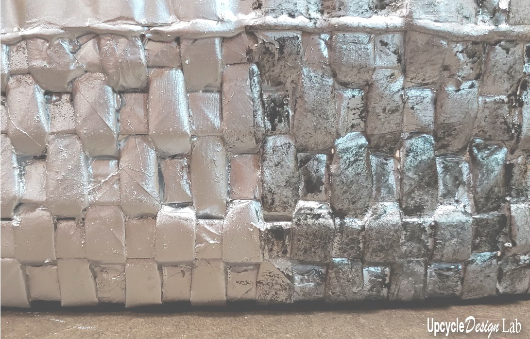 Once I finished weaving, I decided to give the basket a faux metal finish so I sprayed the paper with some silver spray paint and then added a little black for a more antique weathered look.