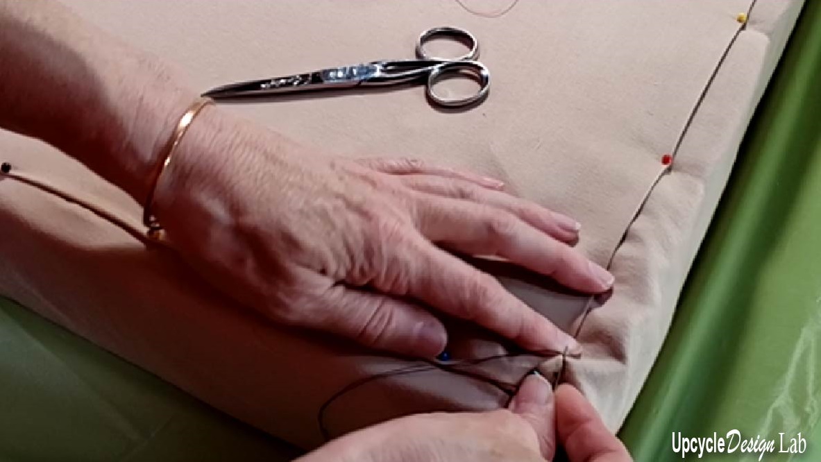 Once the cover was pinned in place I hand stitched the pieces of the cover together.