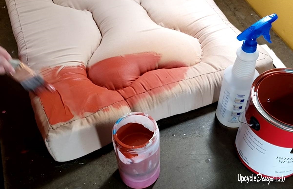 Once I was finished stitching I used some red house paint to finish off the dog bed.