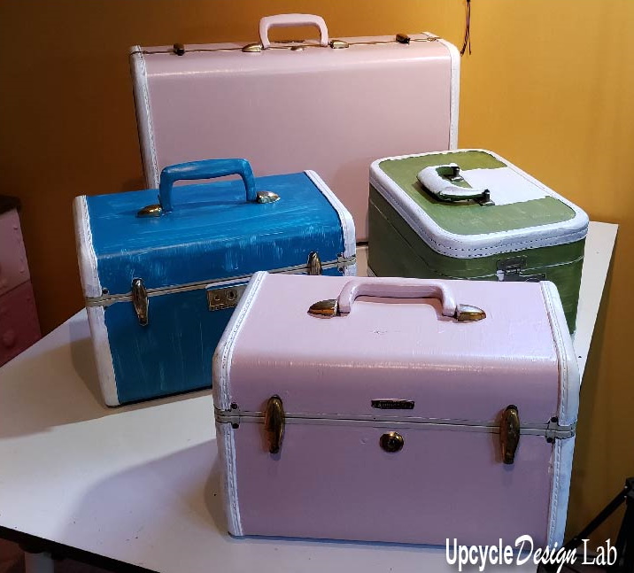 If you have seen some of my other projects you know I have been using a lot of different accent colors. So I figured I would add some of these colors to a few of my shabby train cases.
